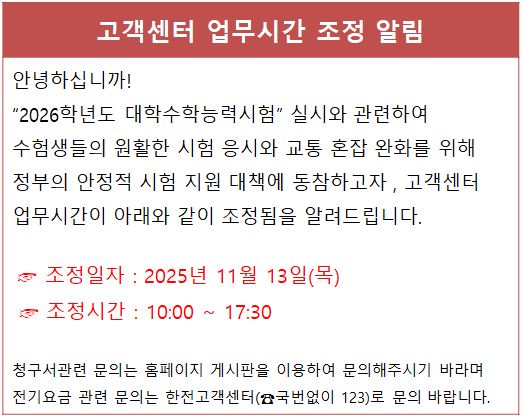 [°øÁö] °í°´¼¾ÅÍ ¾÷¹«½Ã°£ Á¶Á¤ ¾Ë¸²