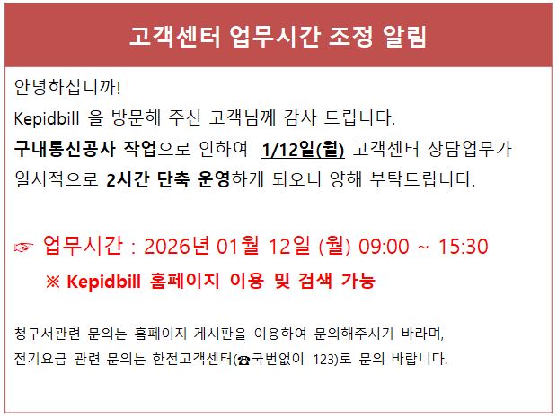 [°øÁö] °í°´¼¾ÅÍ ¾÷¹«½Ã°£ Á¶Á¤ ¾Ë¸²